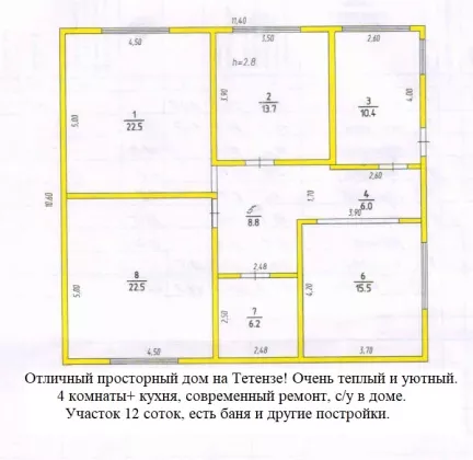 Продаётся просторный жилой дом Sо105,6/56,7/15,5 кв.м. с 4 изолированными комнатами. В доме установлены ПВХ окна, стены выровнены, потолок высокий. Сан.узел в доме. На полу ламинат. Кроме того, дом обладает высоким фундаментом, что гарантирует его прочность и надёжность на протяжении долгих лет. Котельная расположена в отдельном помещении. На земельном участке площадью 12 соток расположены капитальный гараж, летняя кухня , баня, басен, теплица. Беседка способна вместить большую компанию друзей и родственников, для отдыха и развлекательных мероприятий. Этот добротный дом идеально подходит для большой семьи, и его стоимость является весьма привлекательной. Мебель в доме остаётся, что позволит вам сразу же заселиться и наслаждаться комфортом. Не упустите возможность приобрести этот дом по отличной цене и решить свои жилищные вопросы раз и навсегда! Возможен обмен на 1,2 комнатные квартиры.